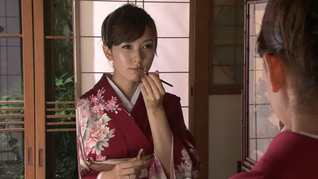 冒頭のシーンです。化粧台の前で着物を着て口紅を塗るシーンなのですが、波多野結衣さんが大人の女性の色気がありすぎて堪らないです。薄いピンク色に塗られた可憐な唇を思わず奪いたくなってしまいます。正直かなりそそられるシーンです。